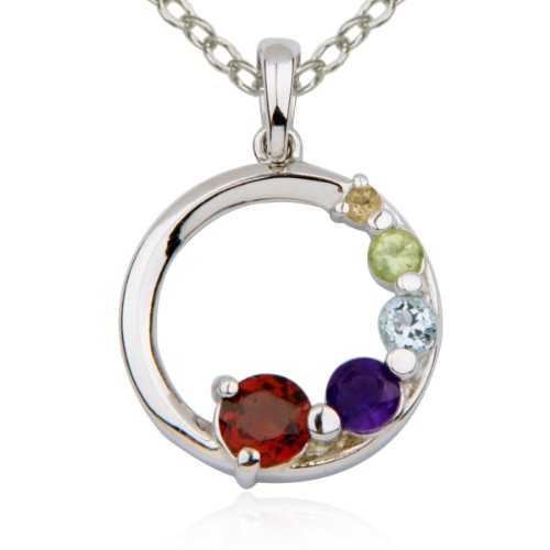 | Rhodium Plated Sterling Silver Genuine Multi-Gemstone Circle Pendant, 18" ...Read more |