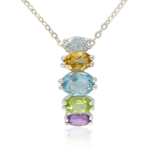 Sterling Silver Oval-Shaped Multi-Gemstone Pendant, 18.5"
